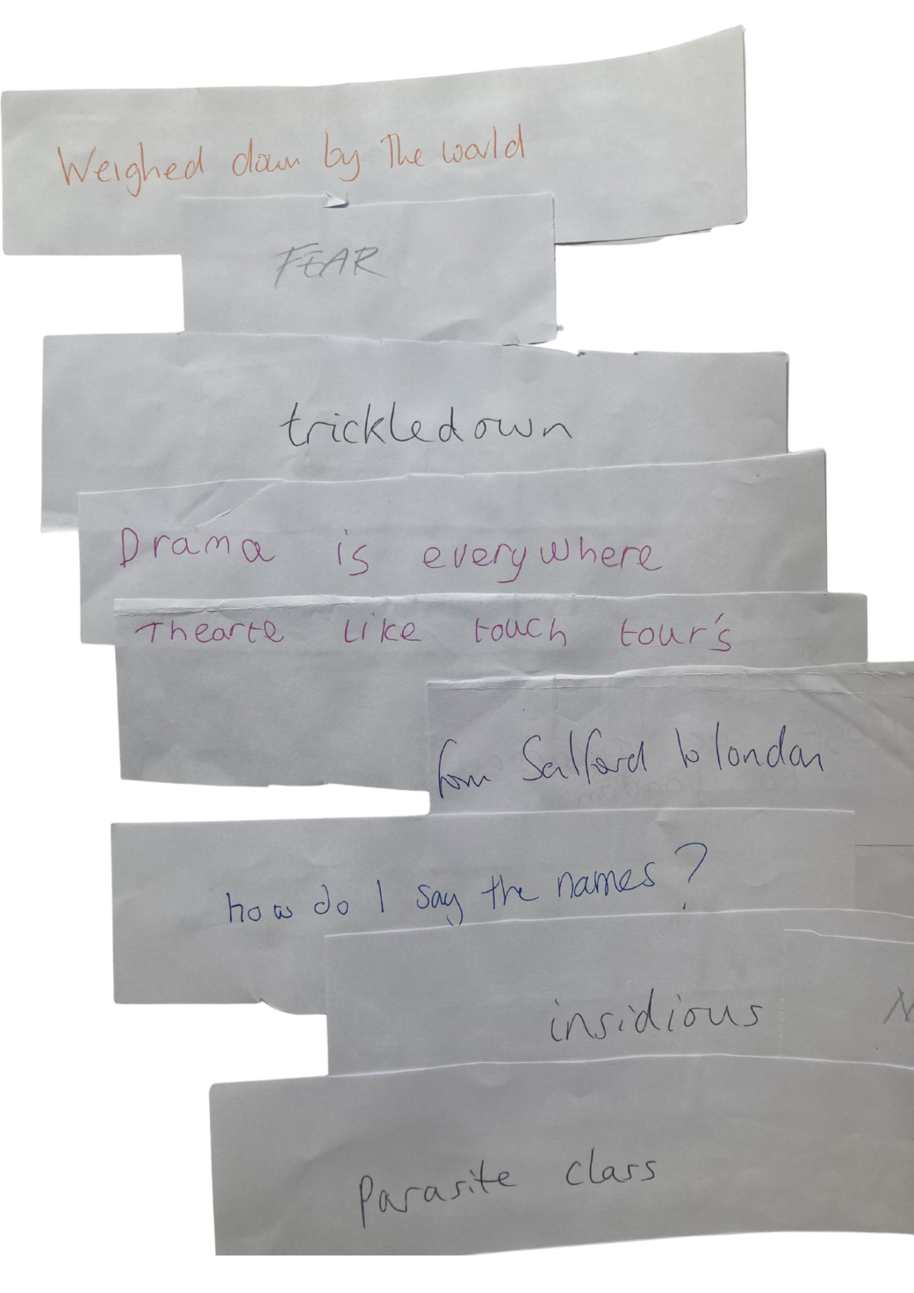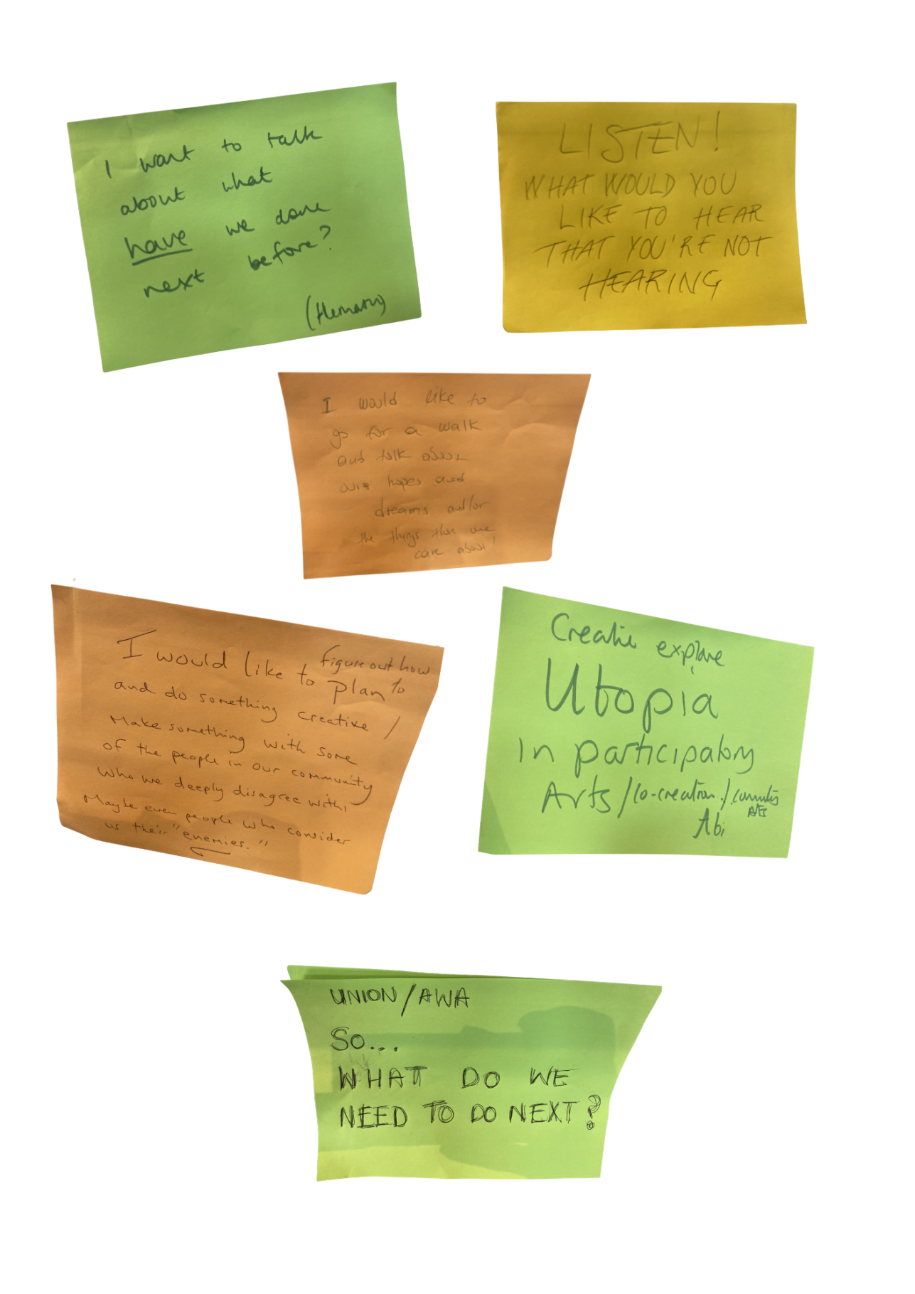 We started with the question ‘What’s Going On?’ inspired by Marvin Gaye’s 1971 song. Using Open Space Technology, we organised into smaller groups to explore the question with creative writing, cutting and sticking, and theatre. We then came back together to share our thoughts and creations.